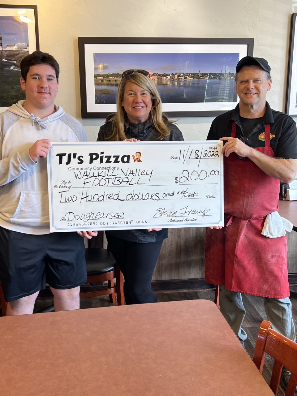 TJ's Pizza proudly supports the Wallkill Valley Football Team by hosting a "Dough Raiser" on November 18, 2022. The fundraiser raised $200.00 for a great organization!!! Go Team!!!
